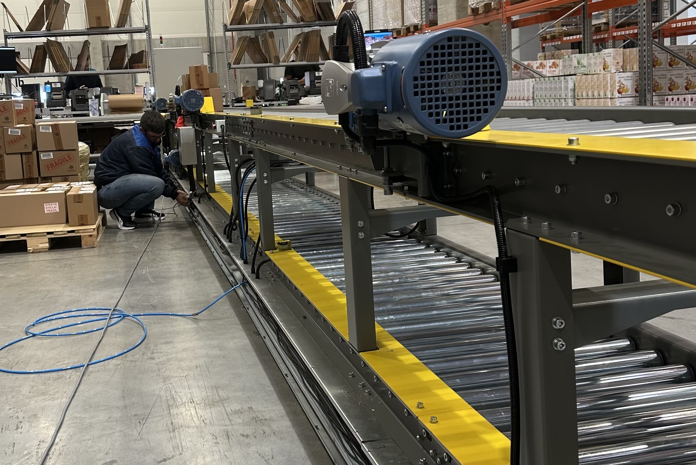 We have developed a complex logistics automation project for a product warehouse, aimed at optimizing the order preparation, packaging, and shipping process. The system was designed to ensure a continuous and controlled flow between the product preparation area and the final packaging area, reducing downtime and the risk of human error.