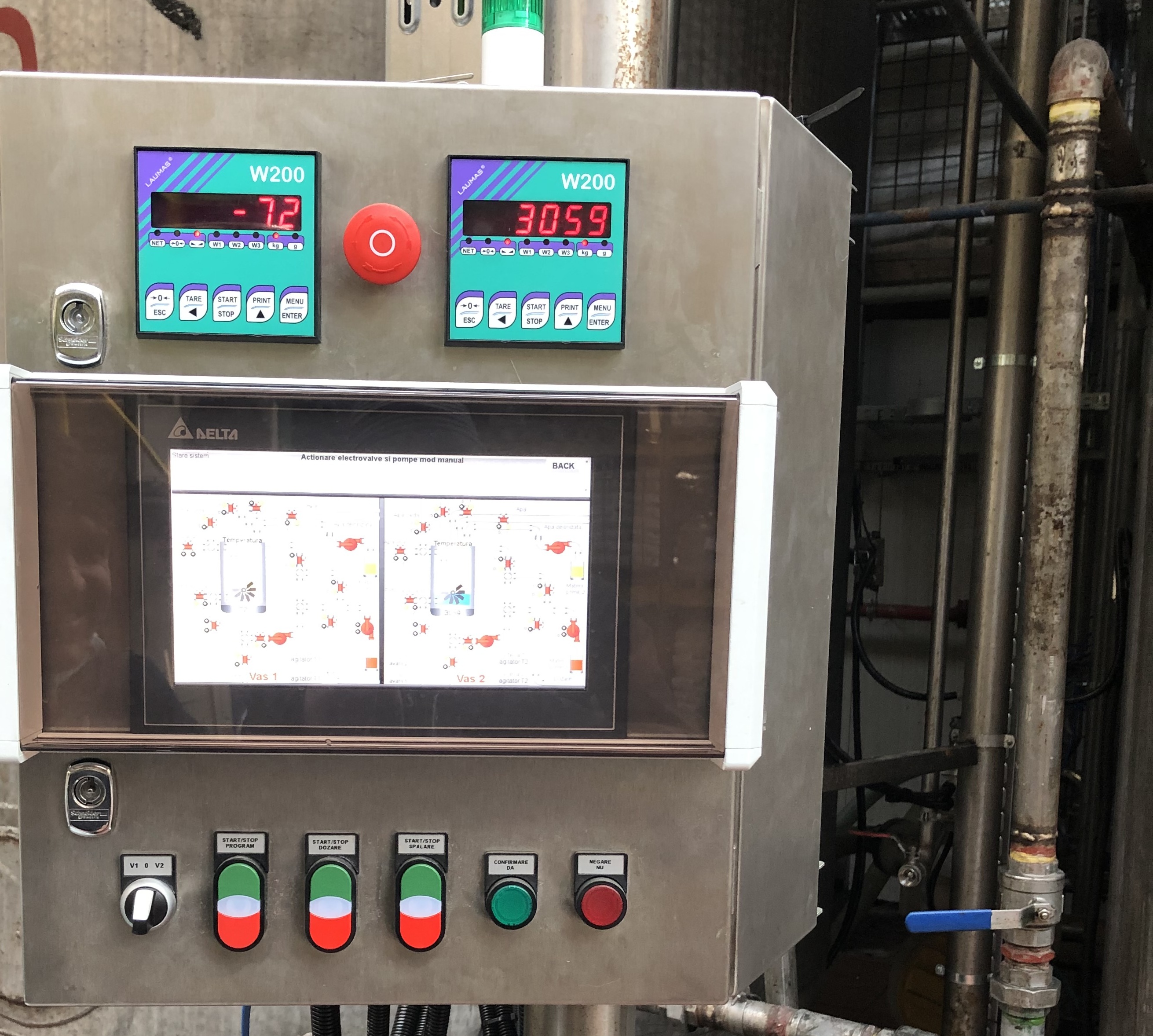 Întregul flux de substanțe este controlat printr-o rețea de electrovalve pneumatice, monitorizate în timp real în PLC.